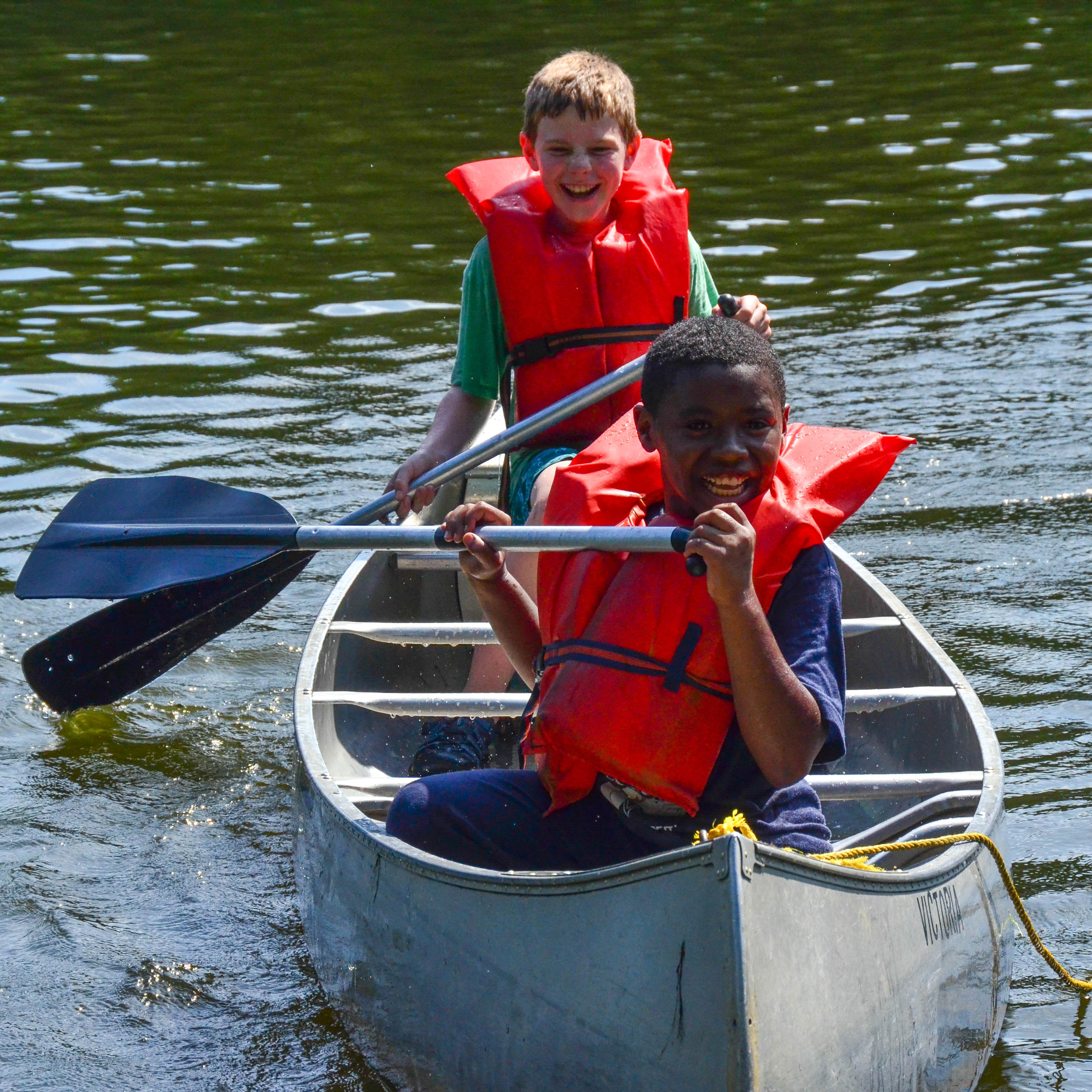 When Fox campers come to boating, they enjoy canoe rides with their counselors. Bear, Eagle and Owl campers have instructional canoeing with our three LGT certified boating counselors. Beginners work on skills like safety, learning the parts of the boat, boarding and docking and straightaway stroke. Campers then progress to learning the draw and J stroke, pivot turns, and more!